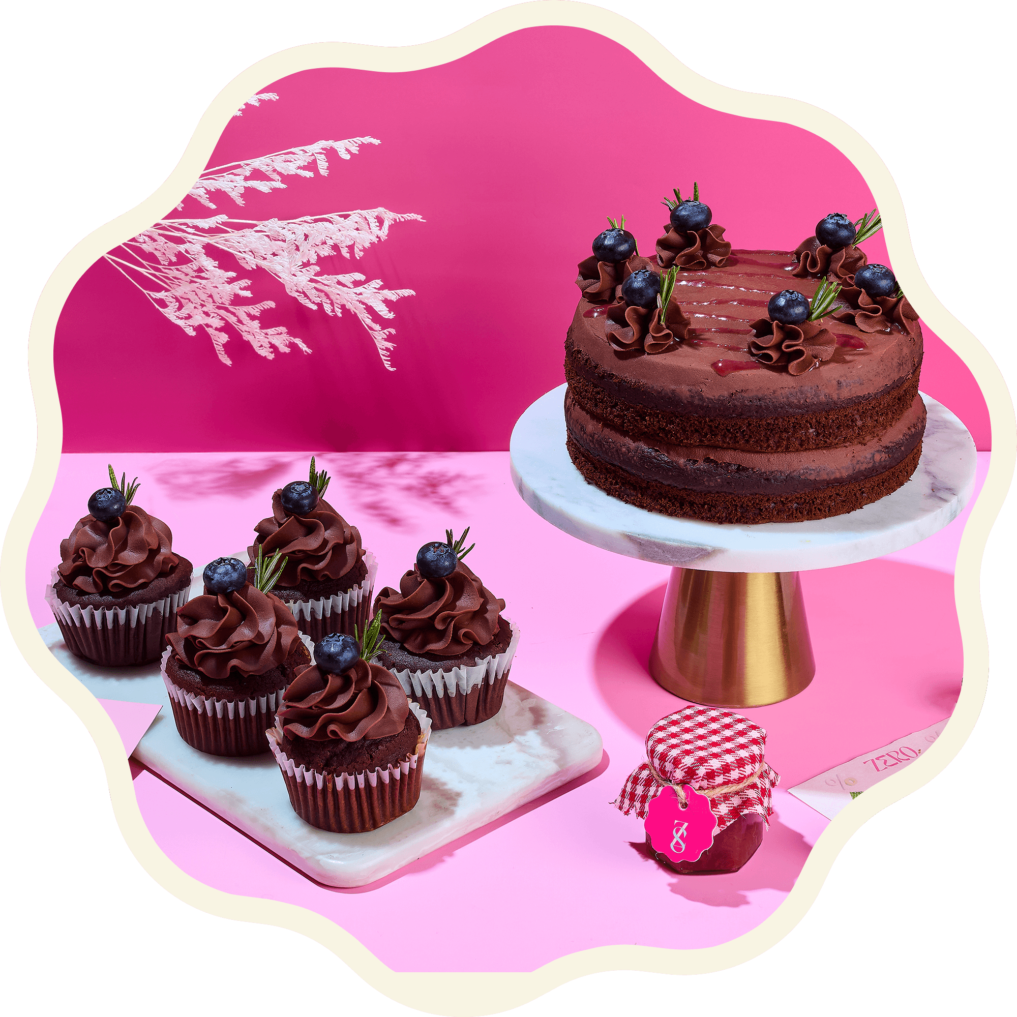 added sugar 0, trans fat 0. A perfect mini celebration set featuring one rich chocolate cake (720 g) paired with five decadent chocolate cupcakes. Crafted with zero added sugar for a guilt-free indulgence—ideal for small parties, intimate gatherings, or a sweet moment you can enjoy without worry. Zero Added Sugar • Gluten-Free • GMO-Free • Organic • Yeast-Free