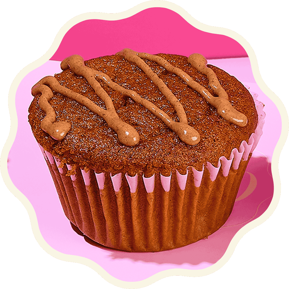 added sugar 0, trans fat 0. A warm and fragrant cupcake made with gluten-free organic flour, organic eggs, and creamy coconut milk. Infused with cinnamon, nutmeg, and sugar-free vanilla extract, then finished with a silky cinnamon glaze for a cozy, guilt-free indulgence. 50 g each•Zero Added Sugar • Lactose-Free • Dairy-Free • Gluten-Free • GMO-Free • Organic • Yeast-Free