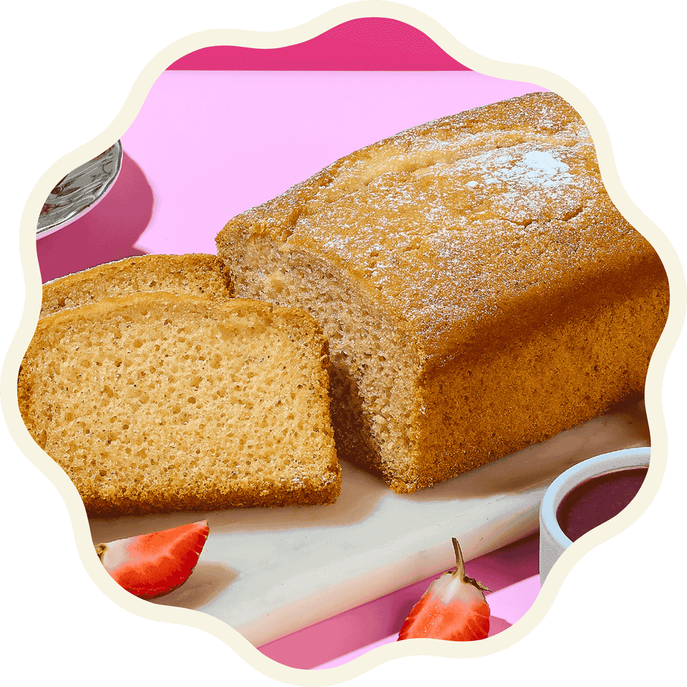 added sugar 0, trans fat 0. A moist, refreshing loaf infused with organic lemon zest and fresh lemon juice. Made with gluten-free organic flour, organic eggs, and a hint of coconut juice for a bright, tender, naturally uplifting treat. 500 g•Zero Added Sugar • Lactose-Free • Dairy-Free • Gluten-Free • GMO-Free • Organic • Yeast-Free